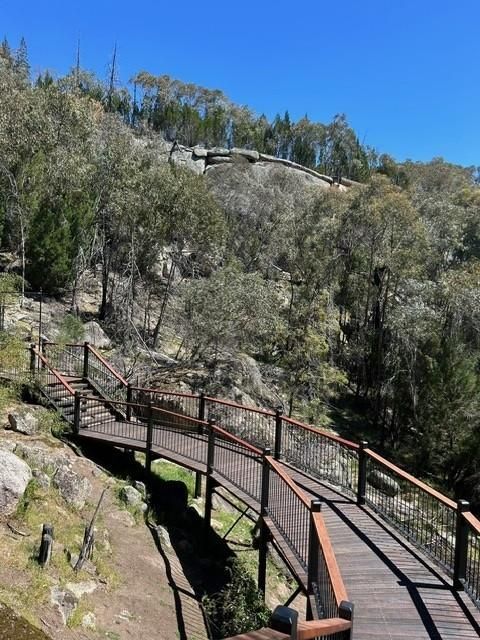 The newly built boardwalks and stairways wind through towering granite boulders and eucalyptus forest, allowing visitors to explore respectfully while preserving fragile sites.